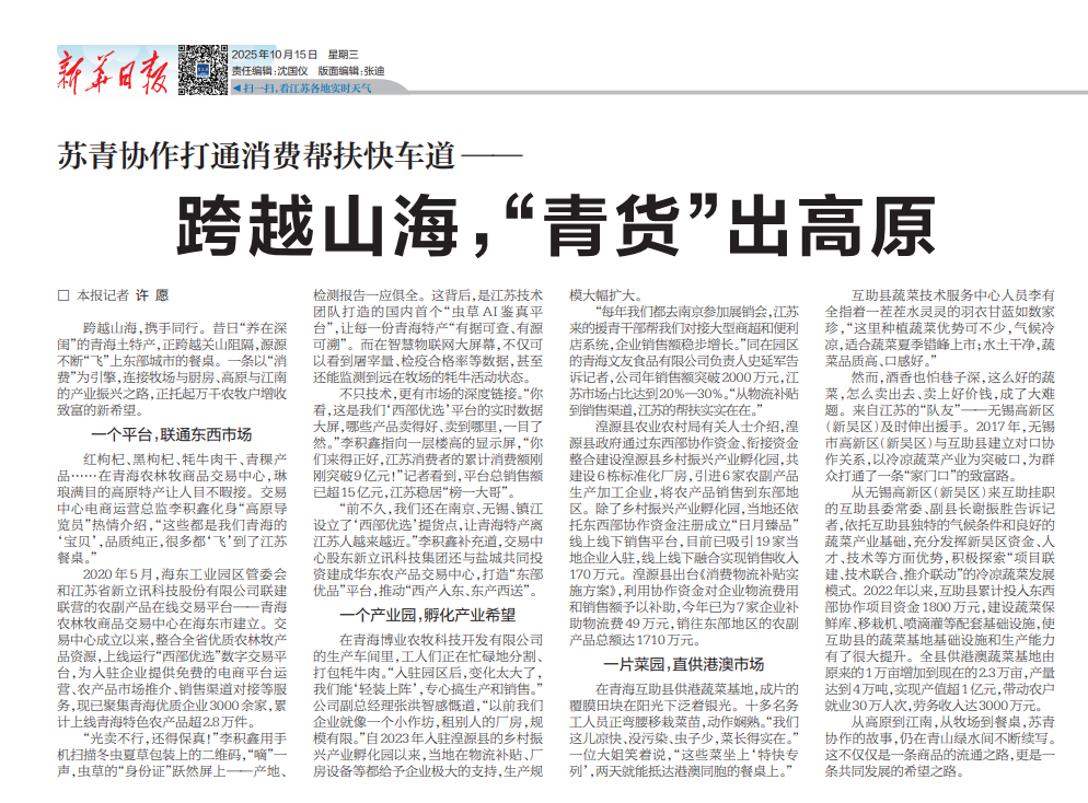 蘇青協作打通消費幫扶快車道 —— 跨越山海,“青貨”出高原