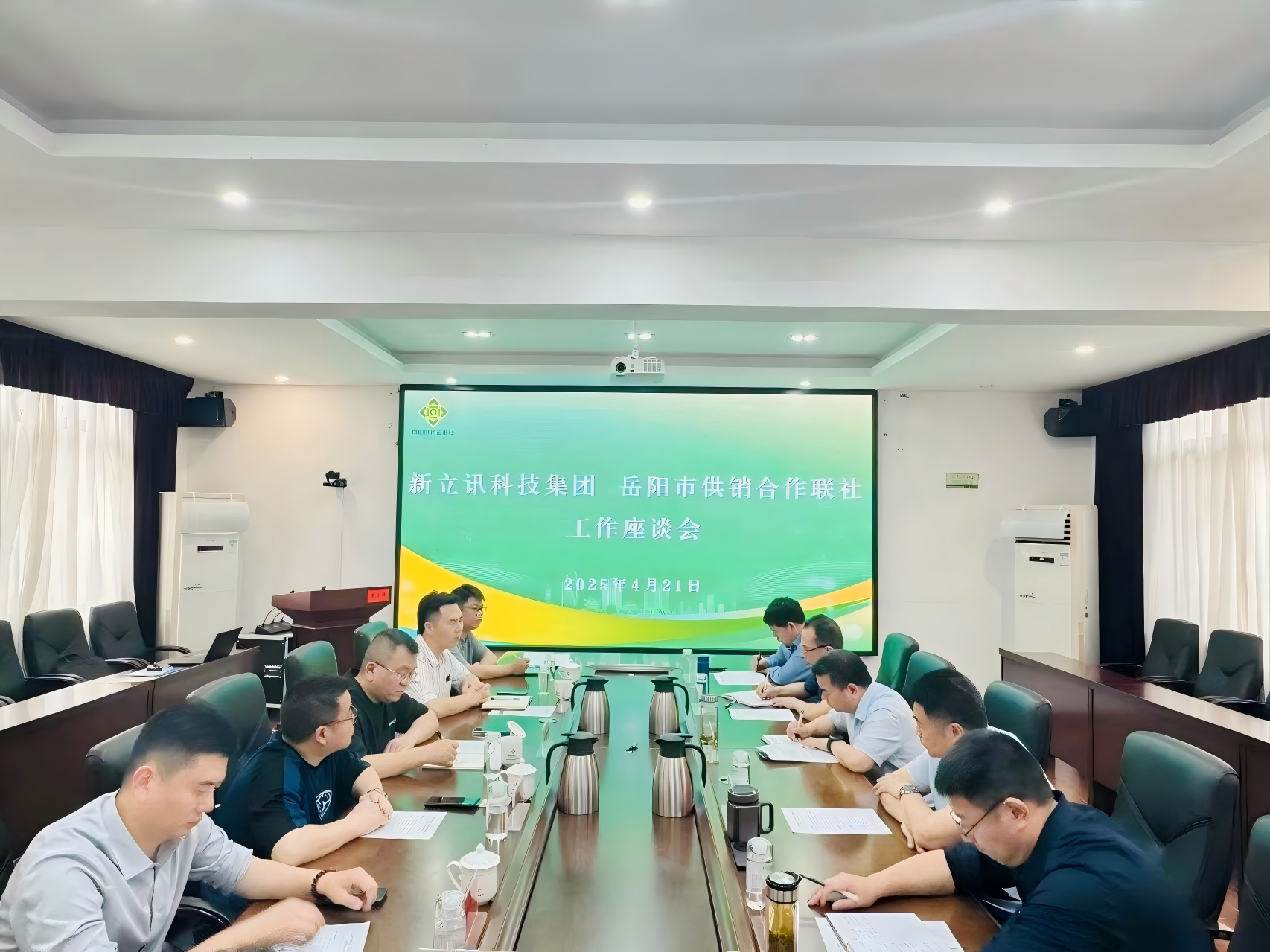 2025年4月21日,岳陽市供銷合作聯(lián)社&新立訊科技集團(tuán)“華中農(nóng)產(chǎn)品交易中心工作座談會(huì)”在岳陽市供銷合作聯(lián)社召開。岳陽市社黨委書記、理事會(huì)主任向風(fēng)行,市社黨委副書記、監(jiān)事會(huì)主任羅海,市社黨委委員、副主任周傳龍、鄒變龍、周傲文,岳陽農(nóng)發(fā)集團(tuán)總工程師李政,新立訊科技集團(tuán)董事長(zhǎng)(兼青海、華東、川藏交易中心董事長(zhǎng))毛霖等與會(huì)嘉賓出席并參與座談。