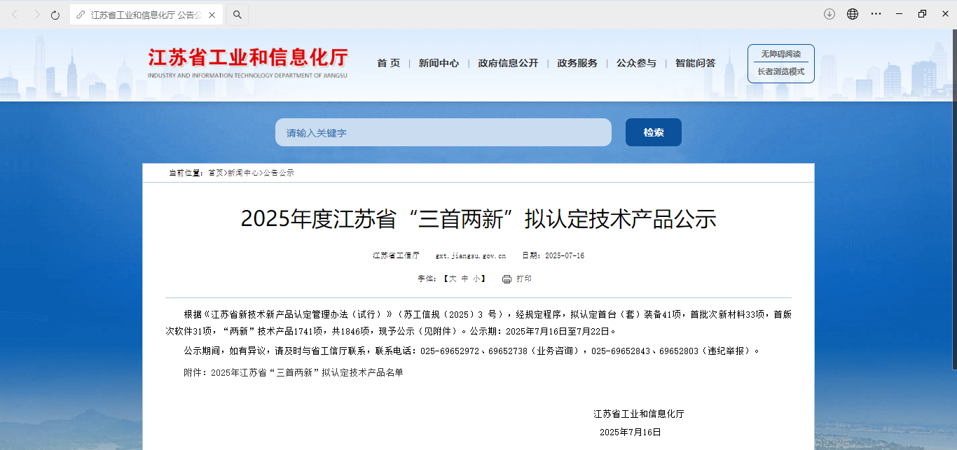 近日,江蘇省工信廳《2025年度江蘇省“三首兩新”擬認定技術(shù)產(chǎn)品名單》公布,新立訊科技集團《安全溯源產(chǎn)地信息管理系統(tǒng)V1.0》位列“兩新技術(shù)產(chǎn)品”名單中。