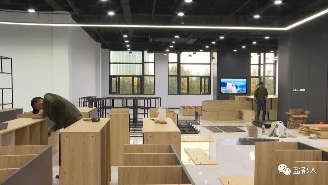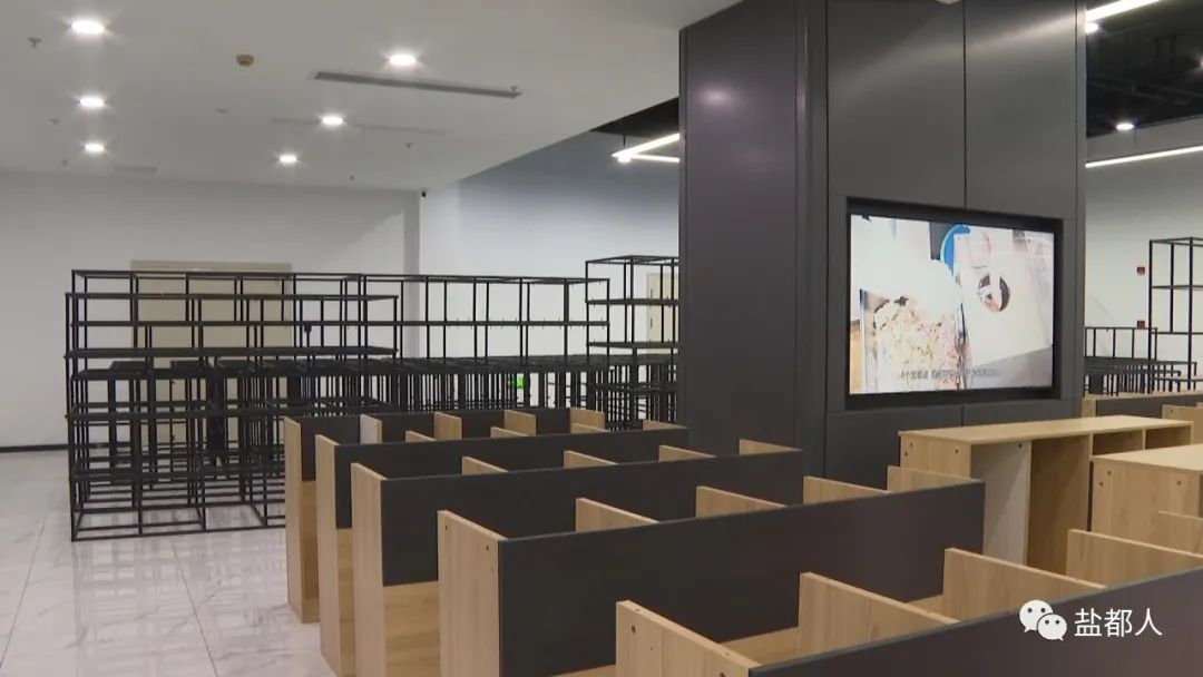 10月21日上午,在位于城西南現代物流園的華東農產品交易中心,施工人員正在對,直播間和貨物展架進行最后的布置,力爭在本月底正式對外運營